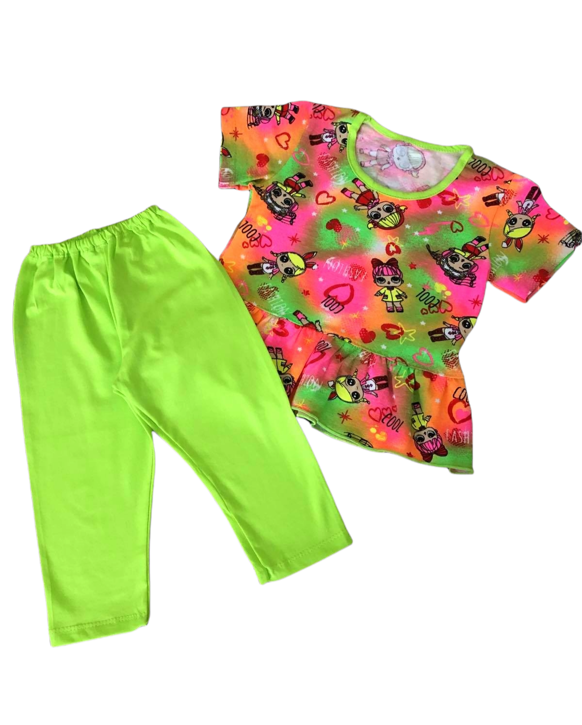 ЛЕТНИЙ КОМПЛЕКТ ДЛЯ ДЕВОЧКИ ИЗГОТОВЛЕН ИЗ МЯГКОГО, ЭЛАСТИЧНОГО И ГИПОАЛЛЕРГЕННОГО ПОЛОТНА, КОТОРОЕ НЕ РАЗДРАЖАЕТ КОЖУ И ХОРОШО ПРОПУСКАЕТ ВОЗДУХ. МОДЕЛЬ ПОЗВОЛИТ МАЛЫШКЕ СВОБОДНО ДВИГАТЬСЯ И ПРИ ЭТОМ ОЩУЩАТЬ КОМФОРТ. КОФТОЧКА ДЕКОРИРОВАНА ШИРОКОЙ РЮШЕЙ ПО НИЗУ, ЛЕГГИНСЫ НА ШИРОКОЙ РЕЗИНКЕ.